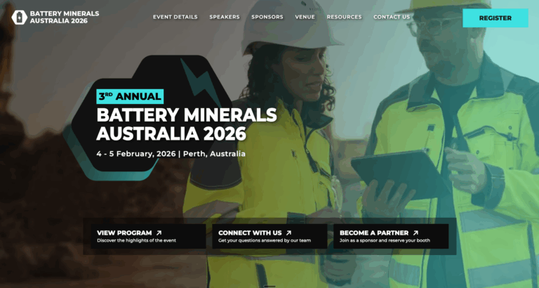 Battery Minerals Australia 2026 is a two-day industry conference on 4–5 February 2026 in Perth, Australia, bringing together miners, explorers, investors, manufacturers and policy representatives involved in battery minerals. The program covers market insights driven by growing demand for lithium-ion batteries from electric vehicles, supply chain strategies, advances in battery chemistries, processing and recycling technologies, and upcoming regulations affecting sustainable mineral production. Attendees will hear technical presentations and case studies from exploration and processing projects, participate in panel discussions, and have structured networking opportunities to discuss commercial and technical approaches to developing battery mineral projects and managing supply chains.