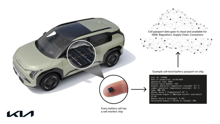 The EV3 test vehicle was shipped from Korea to Germany in February and integrates cell-level monitoring that feeds live data into Kia’s digital passport system. Through the vehicle’s infotainment interface and a TNO-supported data-sharing environment, drivers, technicians, and regulators can access up-to-date battery health information. Automated updates follow any repair work, ensuring traceability across the battery’s life.